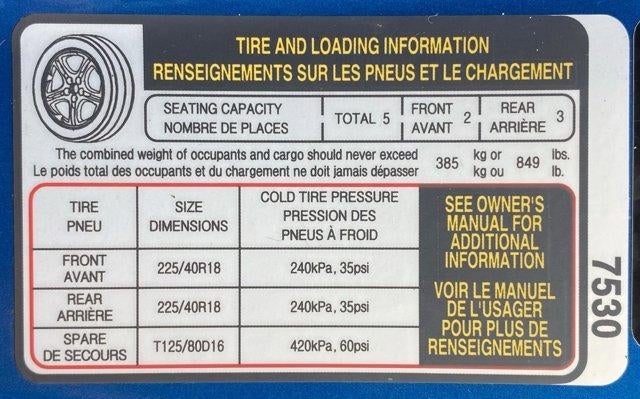 - Tires: P225/40R18 LRR All-Season
